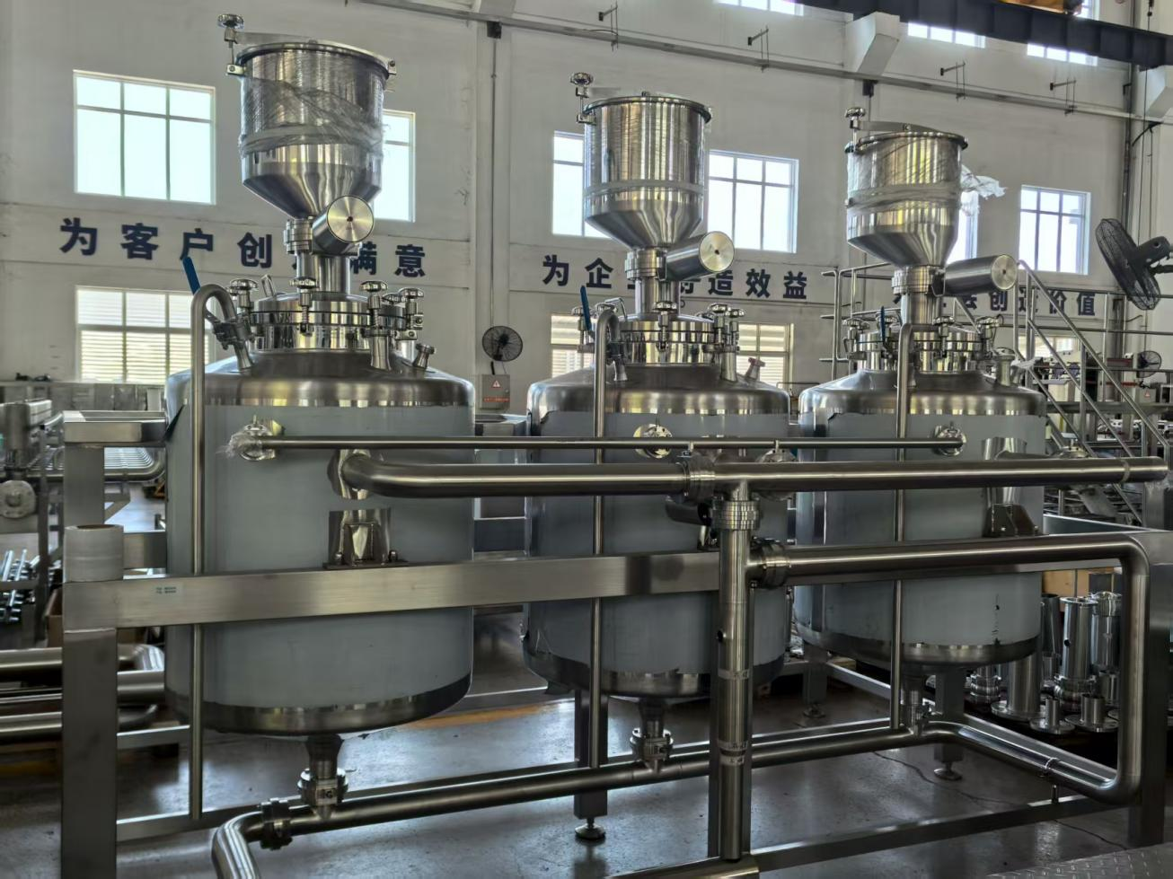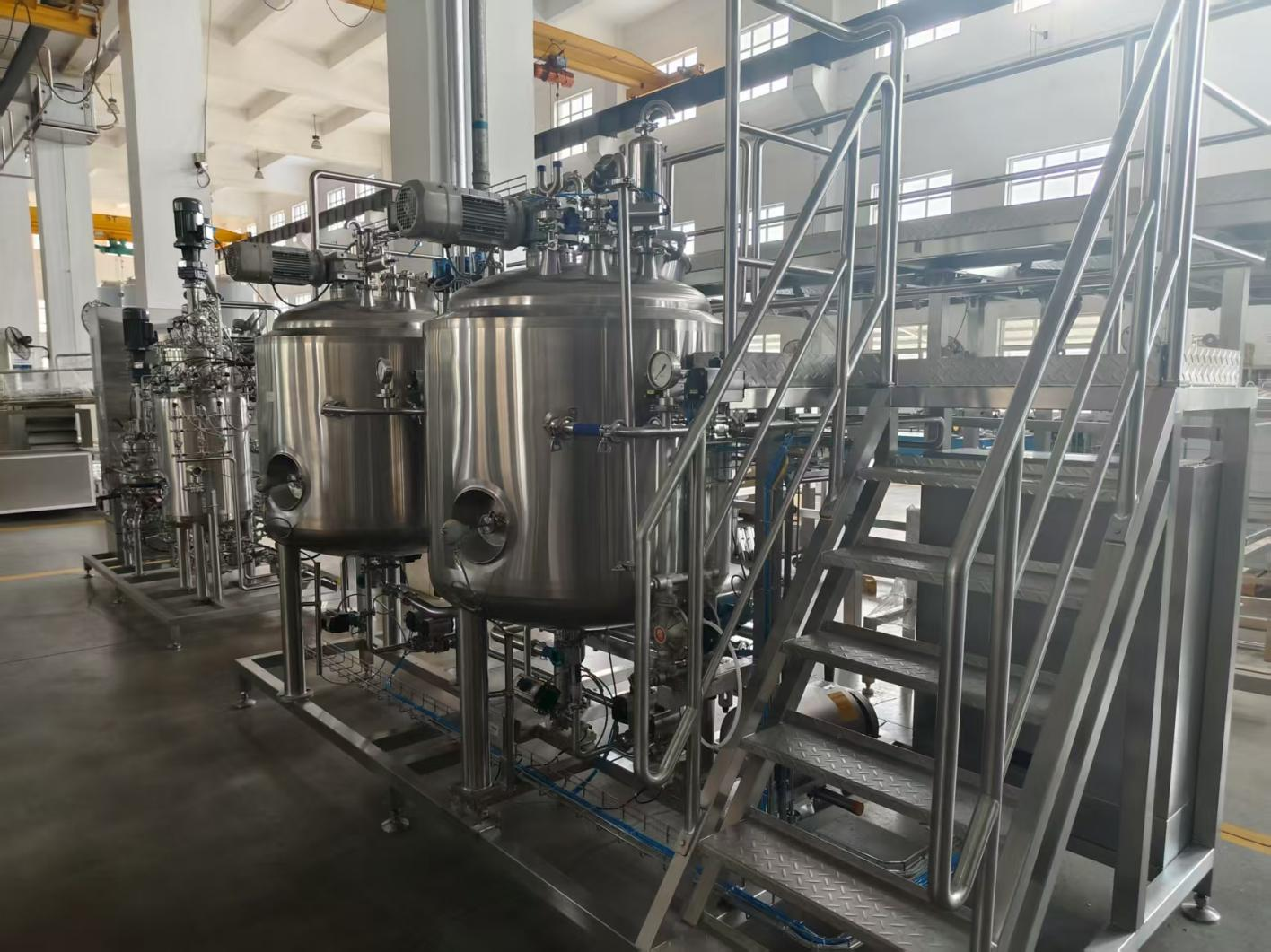 3、該全自動調(diào)配系統(tǒng):該全自動調(diào)配系統(tǒng)采用防混閥閥陣與集成管路設(shè)計,精準(zhǔn)調(diào)控進(jìn)料流量及溫度,具備自動加料、自動控溫、智能混合和在線清洗功能,通過稱重-流量雙反饋精準(zhǔn)調(diào)配,可達(dá)到工藝需求的溶解、剪切、乳化等效果。系統(tǒng)運(yùn)行高效安全,杜絕交叉污染,符合衛(wèi)生標(biāo)準(zhǔn)。系統(tǒng)支持MES系統(tǒng)數(shù)據(jù)對接,采用觸控式人機(jī)界面,支持手動/自動模式切換及一鍵式全自動操作;可實現(xiàn)生產(chǎn)數(shù)據(jù)自動采集、記錄分析及曲線可視化功能。全自動的操作節(jié)約生產(chǎn)日化產(chǎn)品的成本,并且通過控制裝置精準(zhǔn)實現(xiàn)自動化調(diào)節(jié)操作,提高生產(chǎn)效率。