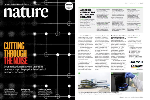 1978年首次提出“A-Zn多維營養(yǎng)搭配概念”以來,善存參與過眾多大型臨床試驗,受試者近7萬人,發(fā)表了14項國內(nèi)外研究成果。2023年5月,全球頂級期刊《Nature》于“聚焦中國營養(yǎng)學”紀念特刊中,發(fā)布“探索復(fù)合維生素科學證據(jù)”專題報道,其中使用了2頁整版詳細介紹善存參與的中國首個高質(zhì)量營養(yǎng)干預(yù)研究——林縣研究35年效果追蹤的重要發(fā)現(xiàn)。