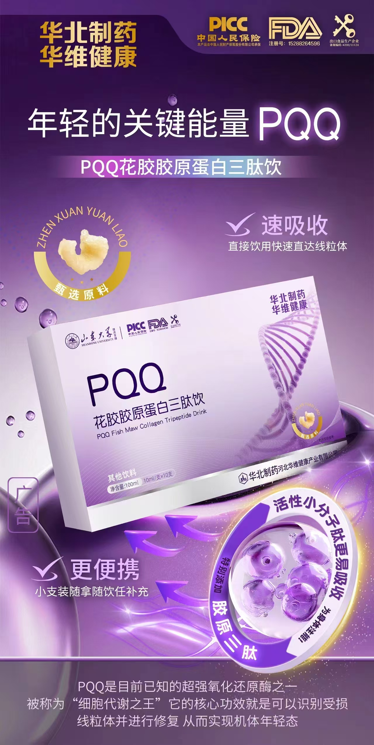 【產(chǎn)品名稱】:PQQ花膠膠原蛋白三態(tài)飲